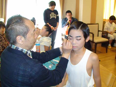 まずは、歌舞伎メイクにはじまります。