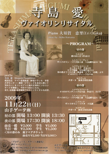 寺島愛先生の、ヴァイオリンリサイタルのお知らせです♪